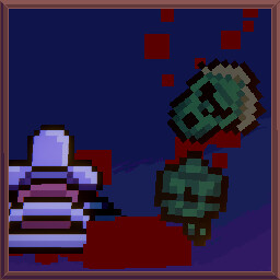 There is a large amount of red squares representing blood that explode out of both players and enemies when taking damage, as well as body parts of the enemies once they are killed.
