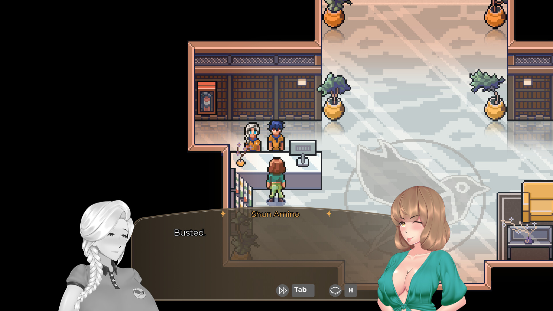 Your boring life changed, when you started to work at the Komadori Inn. A picturesque forest by the sea and beautiful co-workers make the perfect place for relaxing. Manage your time, energy and sperm while you choose between responsibilities and fun in our Dating Sim Adventure.
