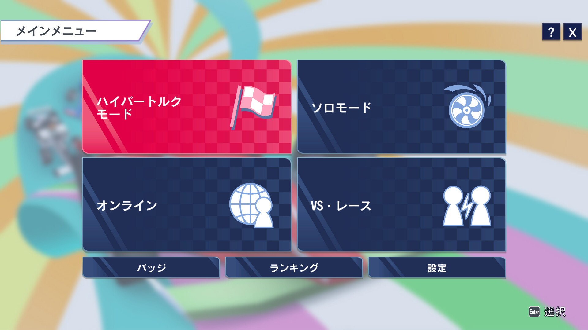メインモードの「ハイパートルクモード」はレーサーとしてチームに所属し、各国で開かれる大会に挑戦するモードです。大会を勝ち進み、世界選手権大会の優勝を目指します。