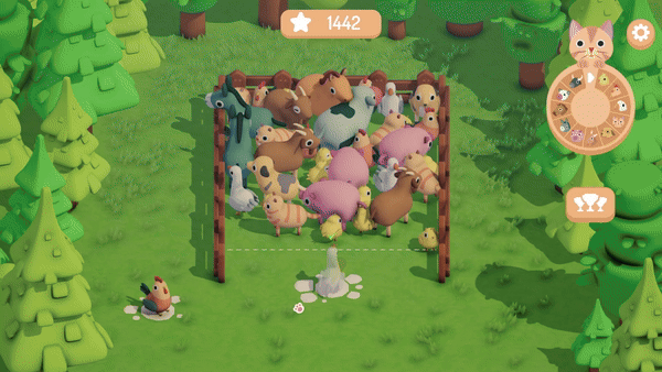Cat & Farm Pals is a simple and fun pull & throw game that you can enjoy playing at your own pace. Spend fun moments with cats and farm animals, compete in weekly tournaments, and collect trophies!" 😸🐮
