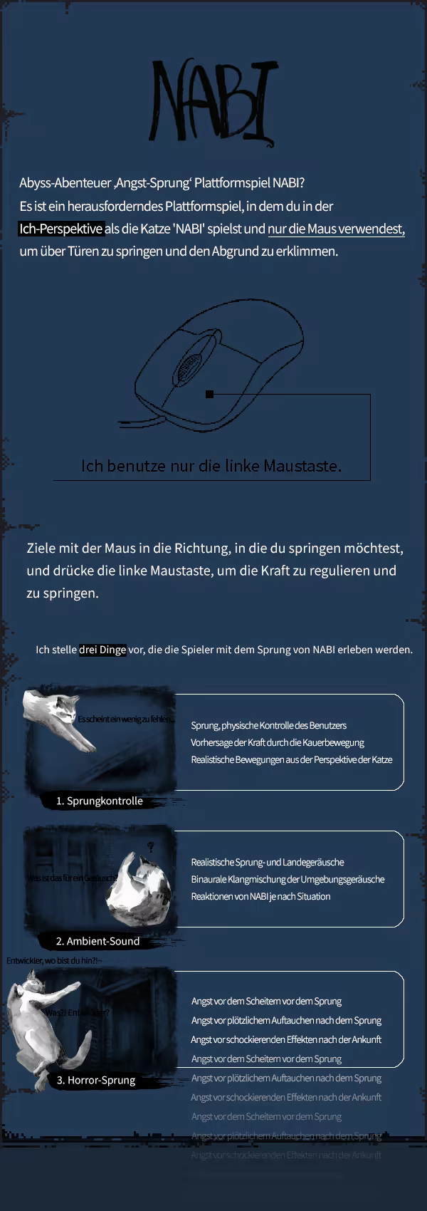 Das Kätzchen namens 'Nabi' findet zufällig ein Licht und versucht, aus diesem Ort der Verzweiflung zu entkommen. Was der Schmetterling vor seinen Augen sieht, ist eine endlose Reihe von Türen, die Tür, die zu Orten schrecklicher Verbrechen und des Bösen führt. Stolz, Lust, Gier, Eifersucht, Faulheit, Völlerei, Zorn. Die Türen sind Beweise ihrer Verbrechen und zeigen die Tatorte, und deshalb sind sie an diesem Ort eingesperrt. Es nützt nichts, Reue zu empfinden. Sie sind bereits hier. Sie locken Nabi an, denn für diejenigen, die so lange gehungert haben, ist Nabi ein Licht. Kann Nabi ihren Versuchungen widerstehen und dem Abgrund entkommen? Warum ist Nabi hier?