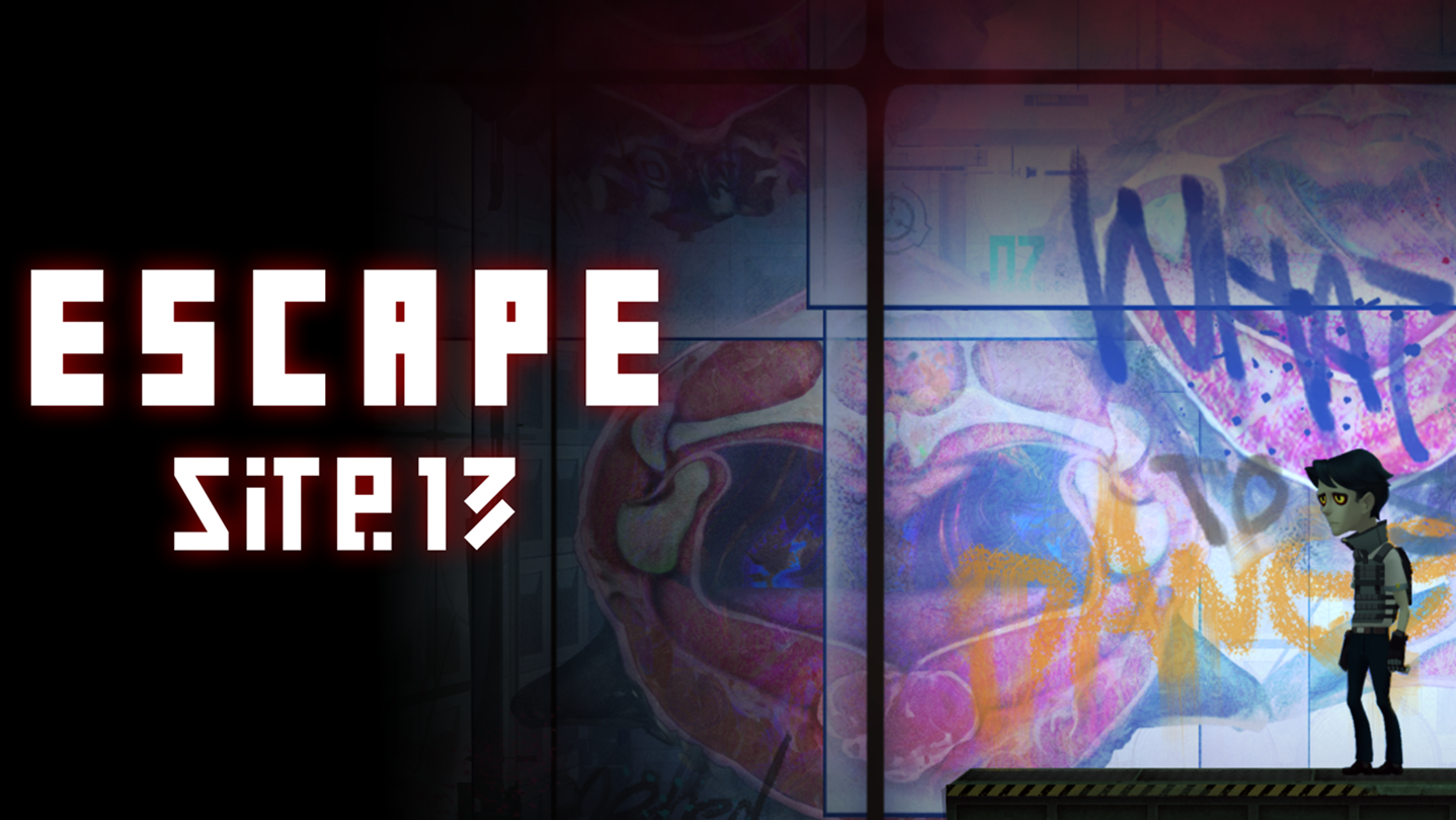 ESCAPE SITE 13 is a side-scrolling adventure game inspired by SCP containment lore, continuing the narrative of SCP-1730 within an original universe.