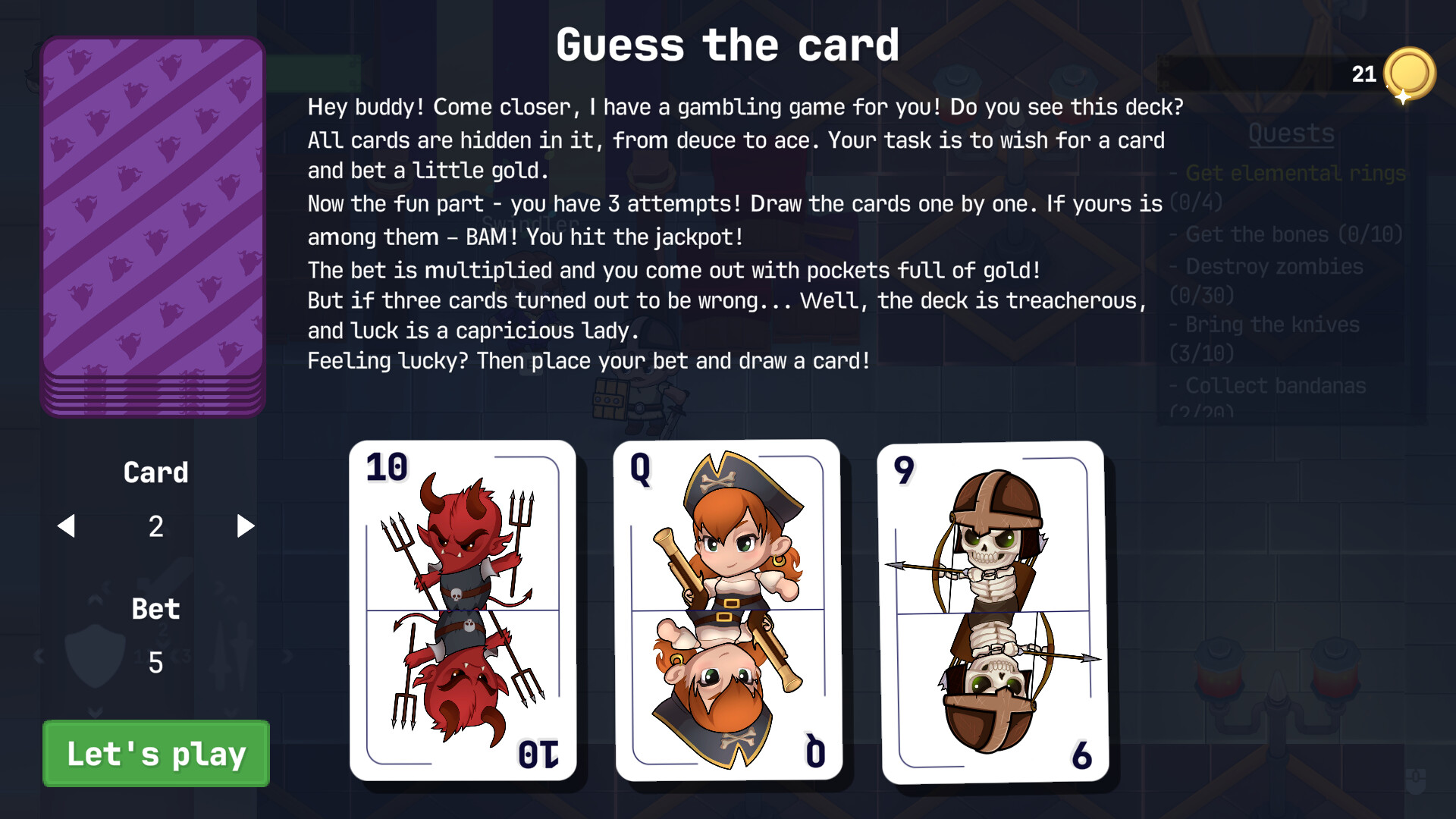 When darkness engulfed the royal castle, an ancient order of Demon Hunters sent three heroes — a Knight, a Pirate, and a Mage — on a deadly mission. Their goal is to destroy the four Lords of Darkness, claim their artifacts, and forever close the gates of Hell.