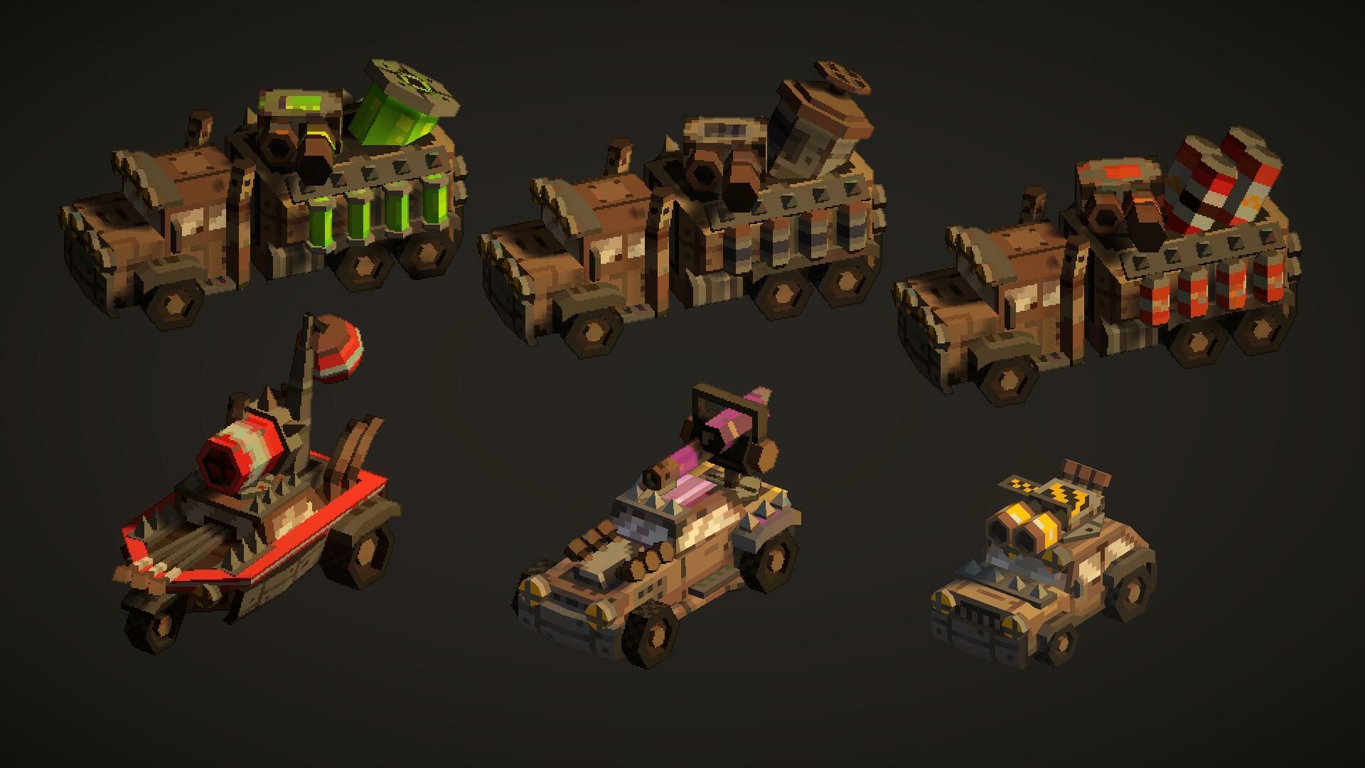Destroy enemy vehicles and use their parts to upgrade your train. The more powerful the enemy, the more powerful the part. Each part has its own advantages, disadvantages, and synergies, so think carefully about which ones you will use. The more powerful they are, the greater their potential for destruction, but also for bringing you to ruin.