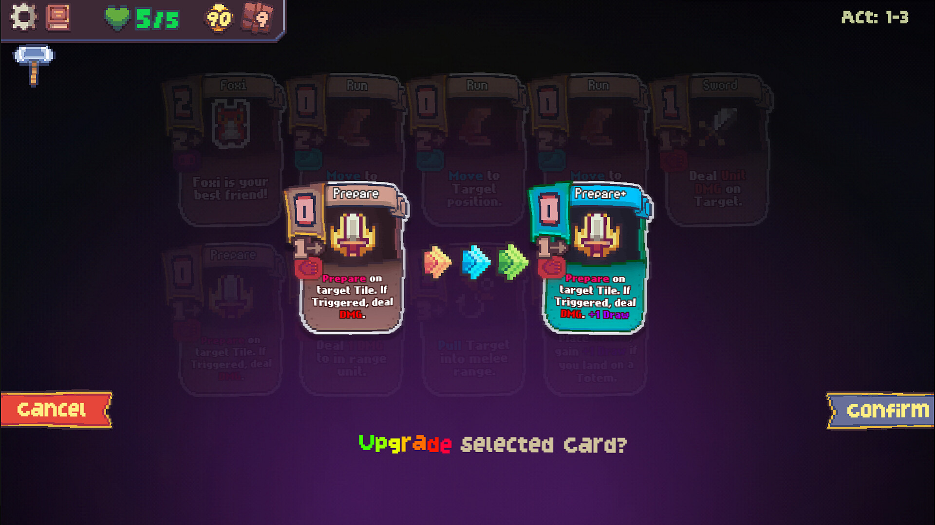 Roguelike Deckbuilding + Turn-based Tactics on a Grid. Use the enemies telegraphed attacks to your advantage and line up your combos to dominate the battle. Complete Quests, Fight Bosses, Climb the Ascensions and Meet the Master!