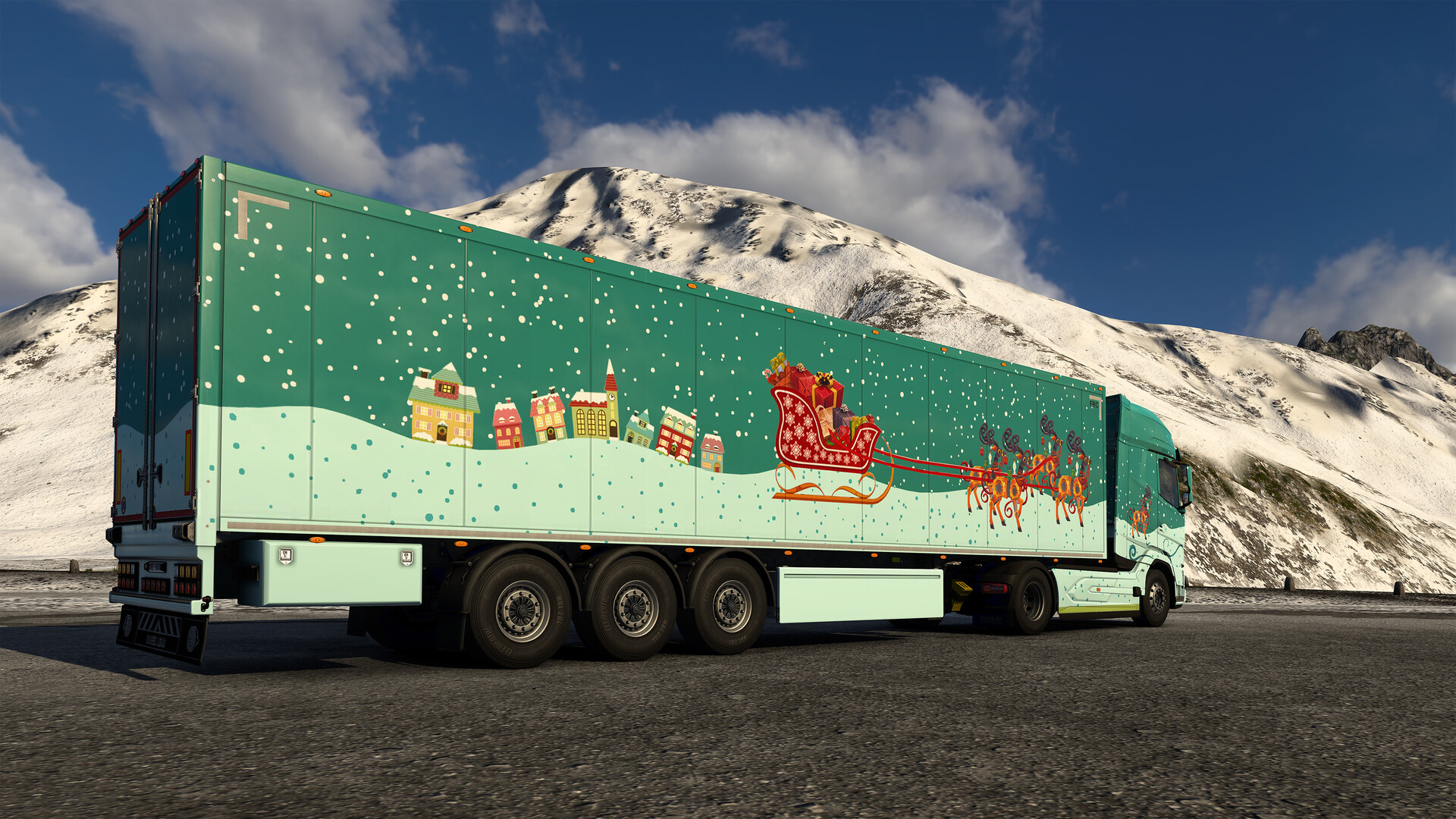 All of these themes are applicable to any in-game truck except for 8x4 chassis configurations. Three of these paint jobs (Clockwork Reindeer, Full Steam Santa, Santa Trucker) are also applicable to some of the in-game ownable trailers.