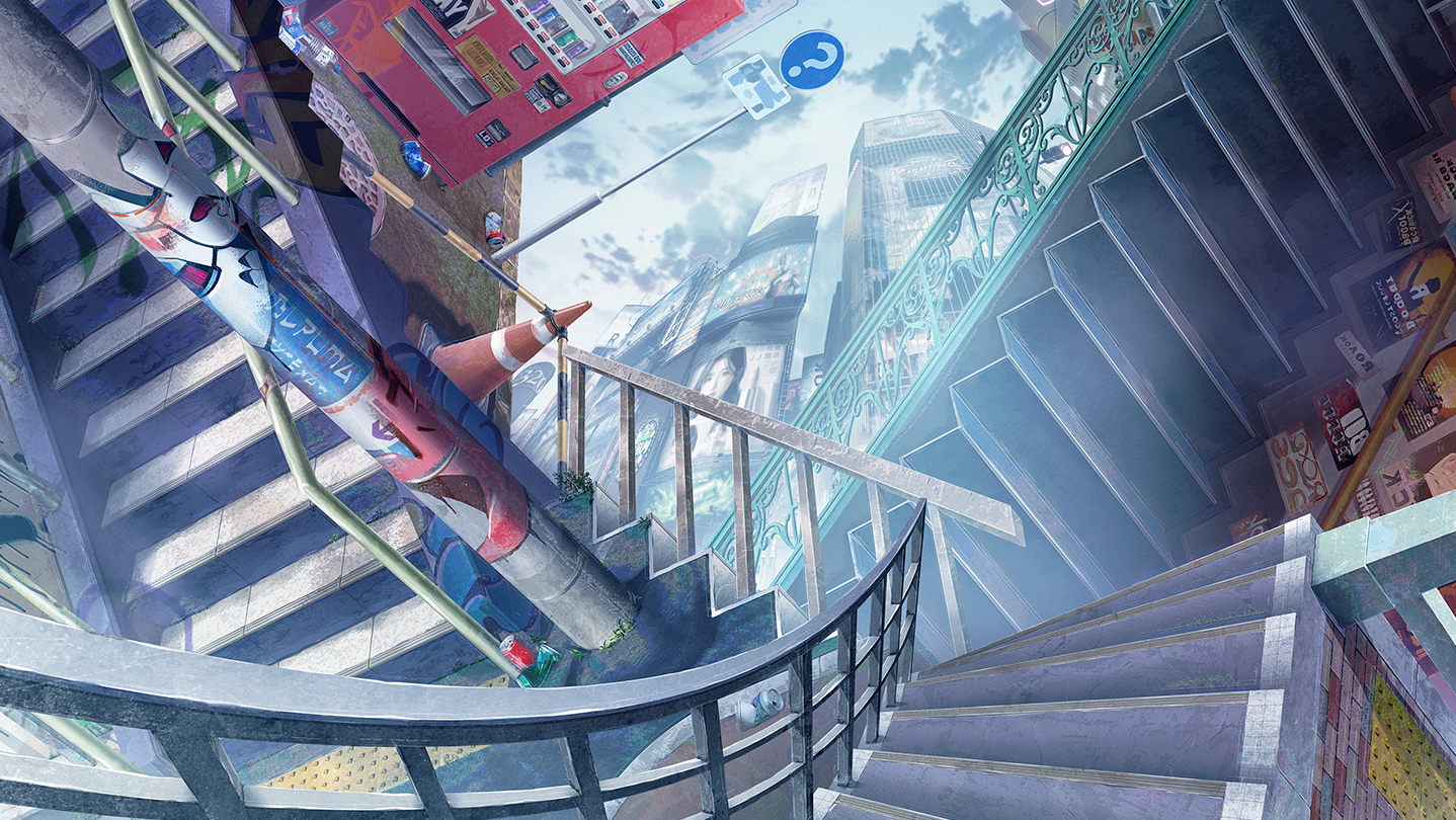 mirrors a Japanese city but with a surreal twist.
