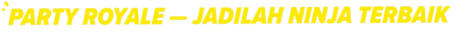 Jadilah satu-satunya pemain di antara 12 pesaing demi gelar ninja terbaik. Selesaikan tantangan dalam berbagai mode satu per satu — rasakan pengalaman party royale ninja. Saat setiap tahap terlewati, lawan-lawan akan tersingkir, dan pada akhirnya, hanya ada satu pemenang!