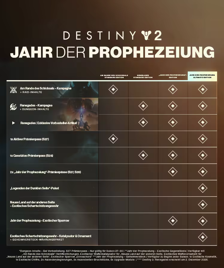 Kauft Destiny 2: Renegades jetzt vor und macht euch bereit, in die kriminelle Unterwelt des Sonnensystems einzutauchen. Ein neues Abenteuer voller Gefahren und Prämien beginnt, in dem die Grenze zwischen Hütern und Abtrünnigen verwischt. Jetzt zugreifen – das ist dabei: