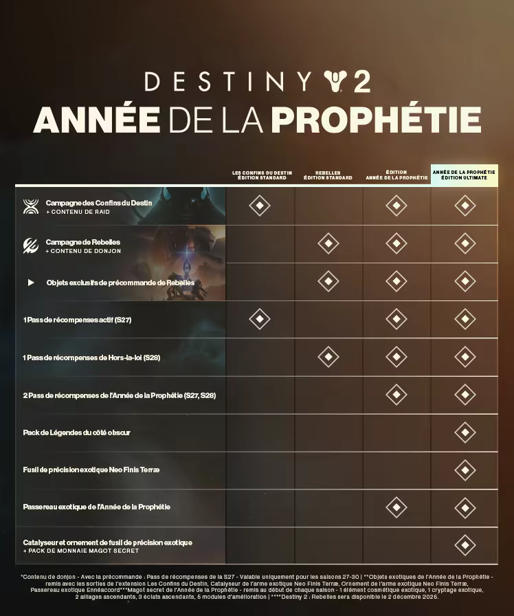 • Notes supplémentaires : Beginning on June 4, 2024, Destiny 2 is ending support for Windows 7, Windows 8, and Windows 8.1 operating systems.