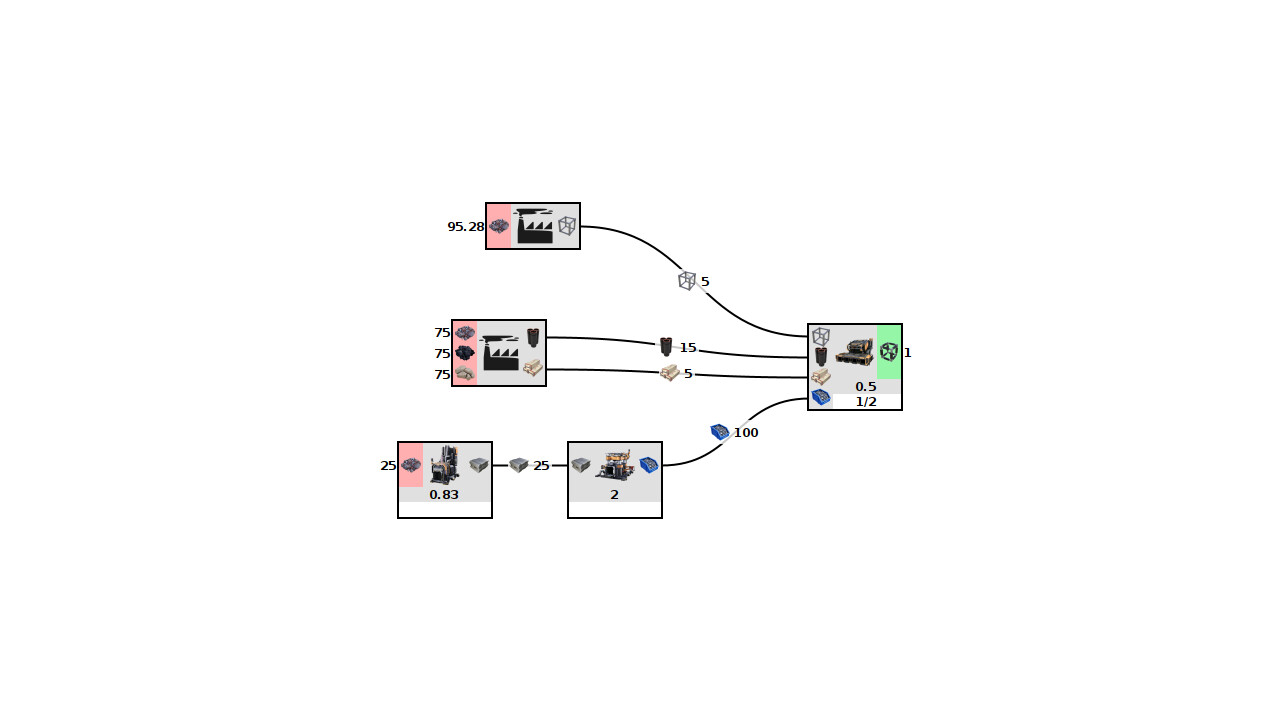Model your Satisfactory builds. Set up your machines however you like, adding optional limits to the number of any of those machines and the tool will calculate how the parts will flow and how many of each machine type are getting used.