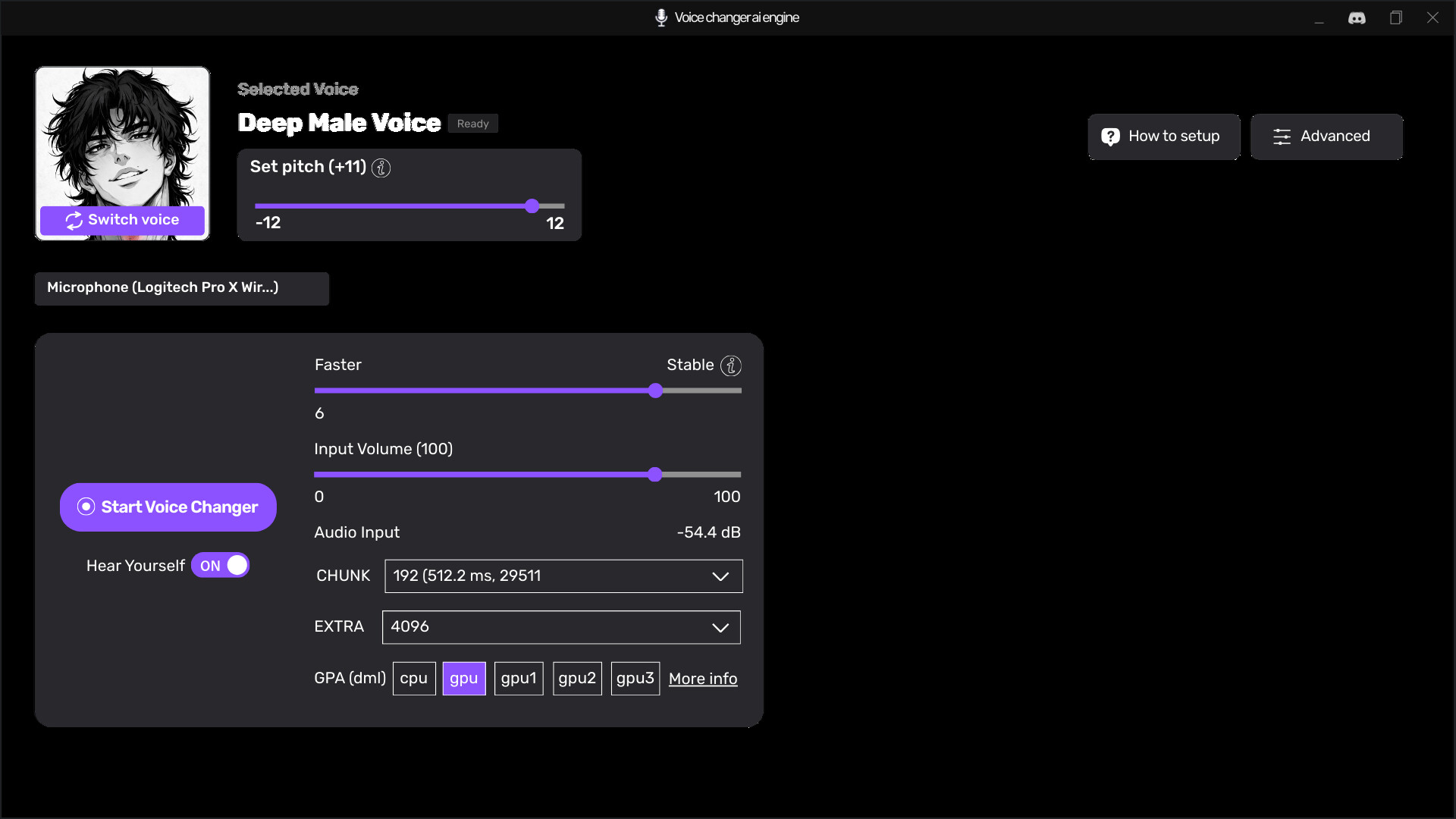 • Voice Changer AI Engine을 실행하고 새로운 목소리를 선택하세요.