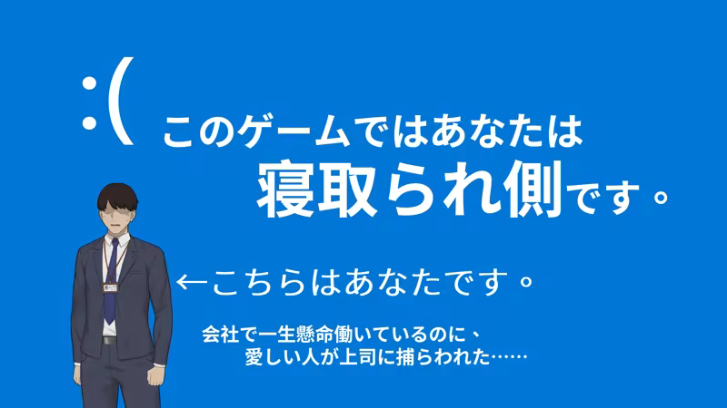 あなたはブラック製薬会社のしがない社員。上司である恋人は、あなたがマネージャーに叱られると、いつも味方してくれます。しかし、実は金髪マネージャーも彼女に目を付けており、あなたと彼女を引き離そうとしています。