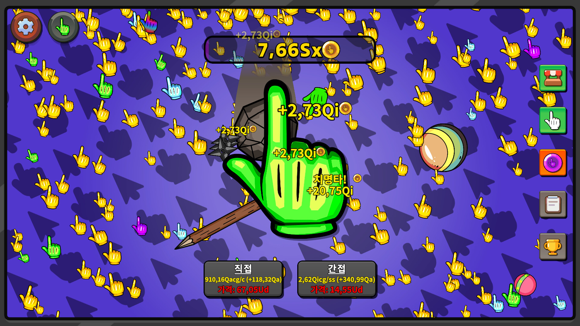 클릭커 골드를 획득하기 위해 클릭커에서 클릭해 보세요. 클릭커 골드를 클릭으로 업그레이드해 보세요. 더 많은 클릭커 골드를 받기 위해 하강하는 클릭커들을 클릭해 보세요! 상점에서 발사체를 구매하여 하강하는 클릭커들을 간편하게 제거해 보세요.