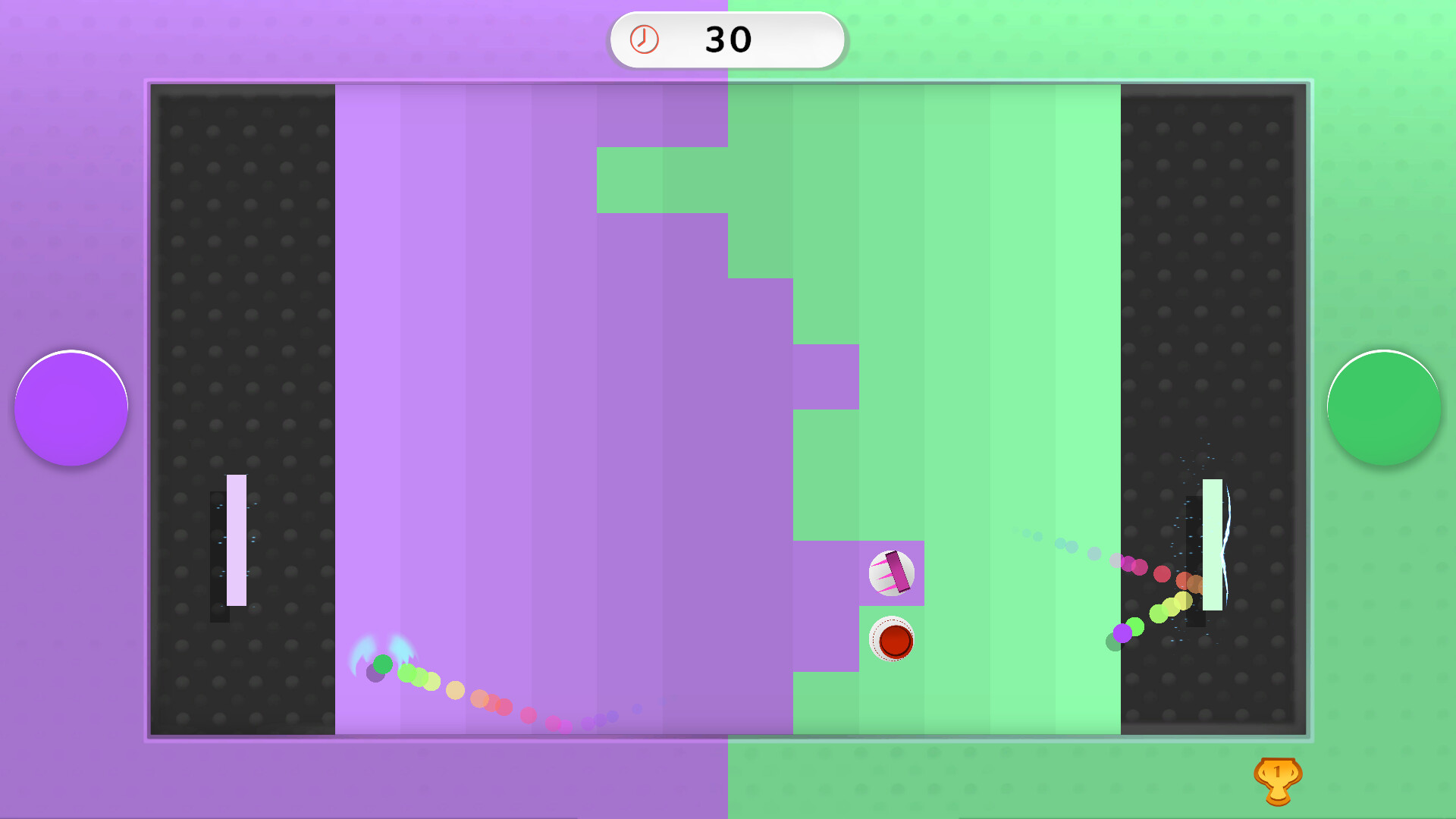 Play the classic Pong but with a twist! Hit the opponents squares with your ball to paint them in your own color. But be careful, your opponent will do the same. The player with more squares in the end wins the match!