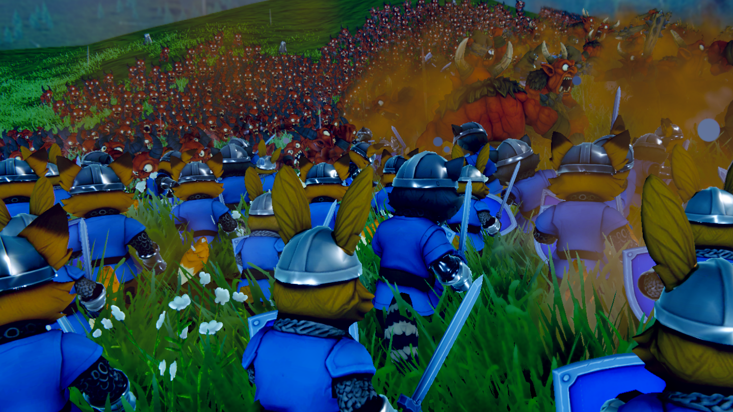 Protect Larry is a strategy game where you lead your army through a series of battles across different environments. During each battle, you're free to switch back and forth between two modes. In commander mode, you can survey the field from above and issue tactical orders to your troops. Or, you can enter the fray yourself in soldier mode, taking control of any of your units from a third-person perspective to turn the tide firsthand.