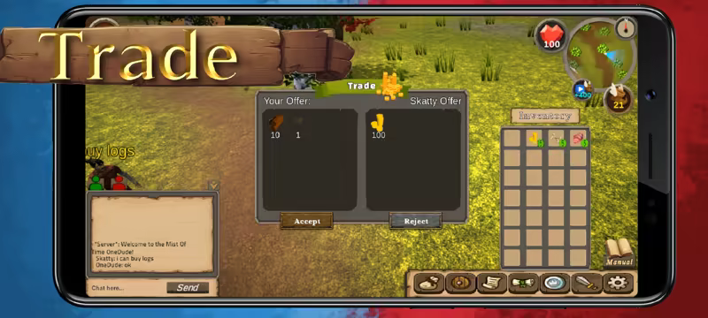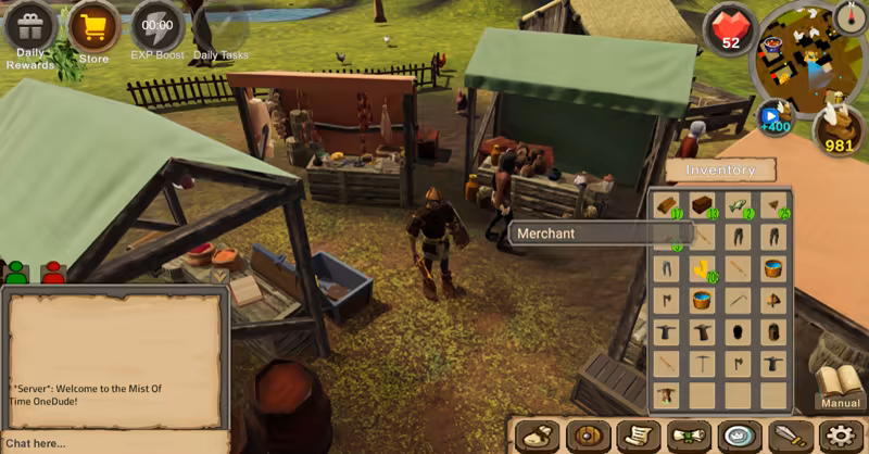 *Diverse Skill System: Master various skills including Woodcutting, Fishing, Cooking, Crafting, Melee, Chivalry, Ranged, and more.