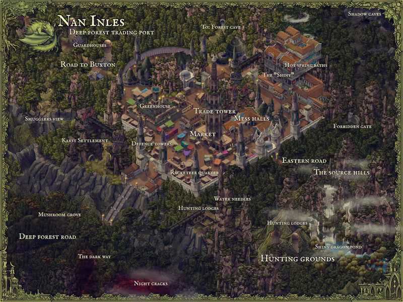 We plan on having maps made for each town where we get to explore every single one as well as meeting new characters and viewing new places. You get to click on a specific certain area, let's say you wanted to go to Nan Inles. You would get this where it's even more interactive from there.