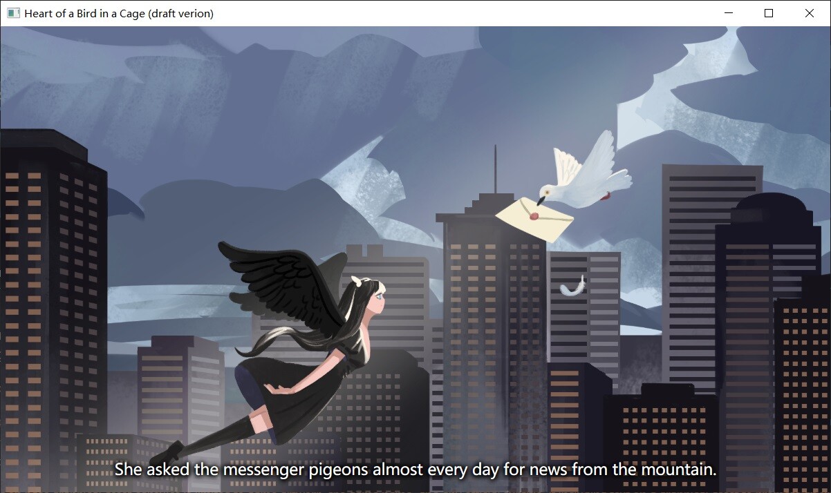 Heart of a Bird in a Cage is a short visual novel presented in roughly 930 words of text.