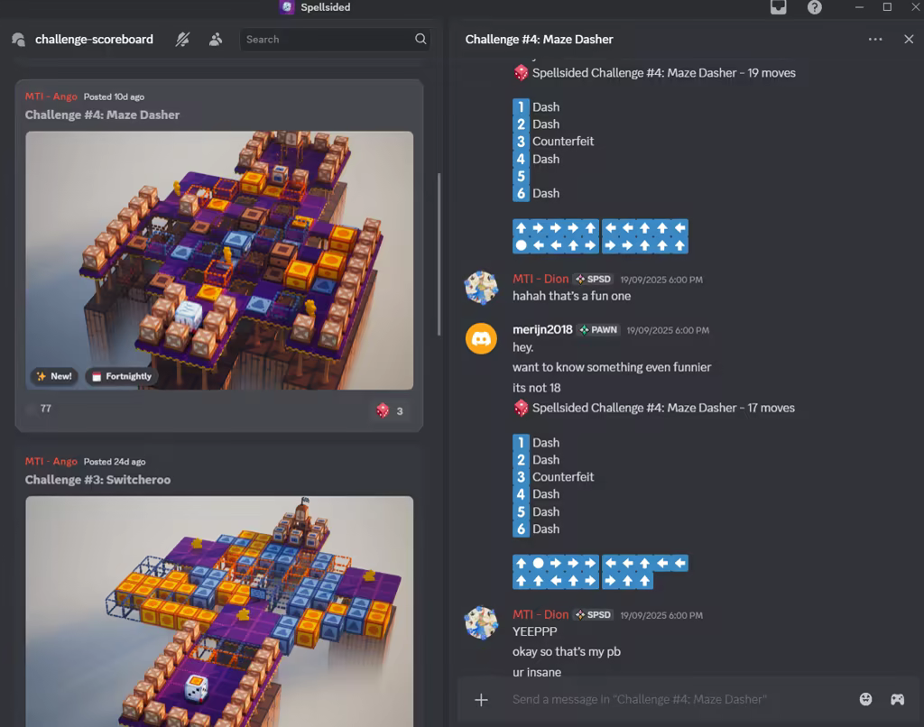 A rolling snapshot of Spellsided's development in the form of regular fortnightly challenges. Break the game to find the most efficient solutions to these open-ended puzzles.