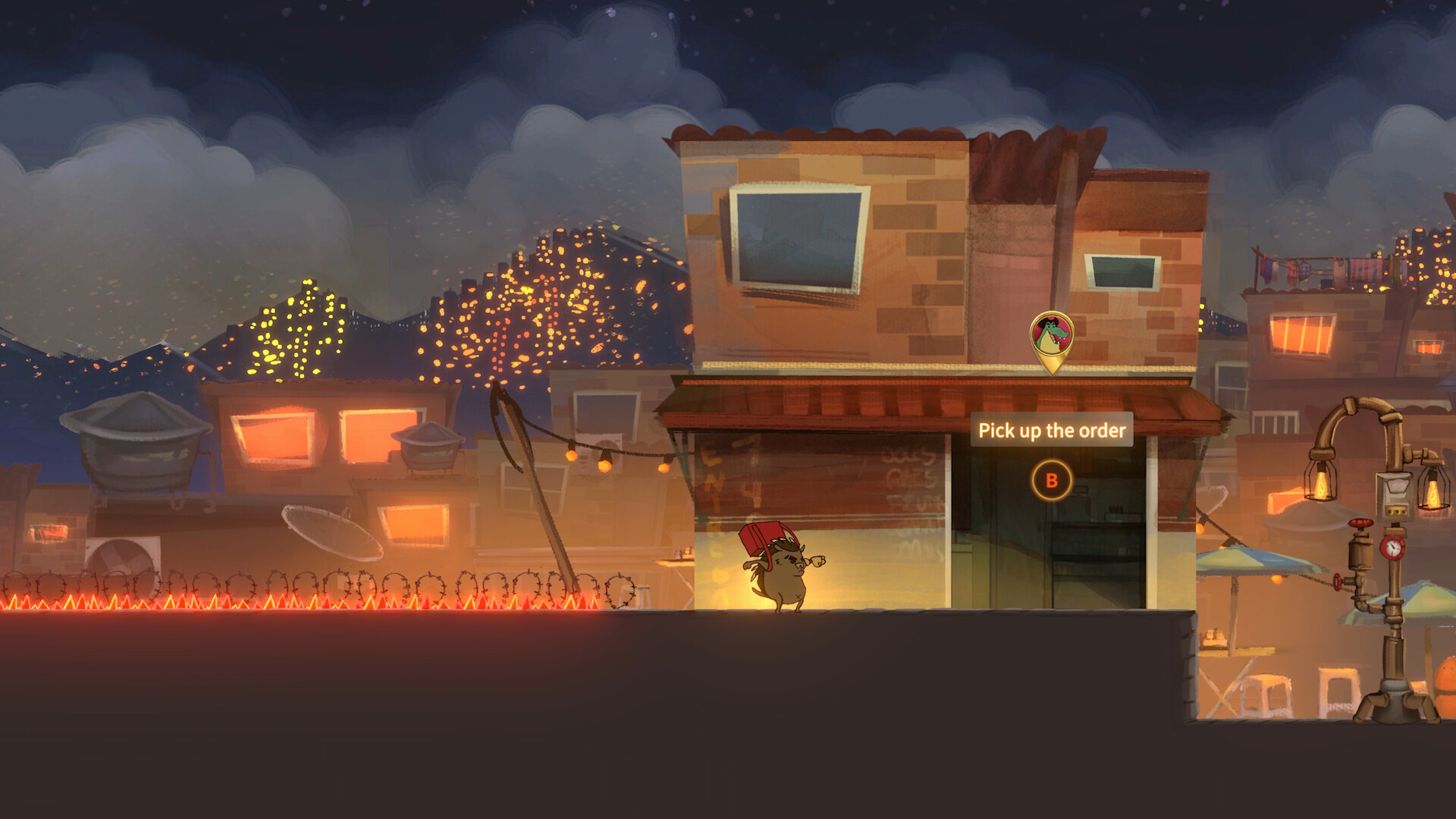 Mangút is a single-player platform adventure without combat, featuring a narrative that unveils the daily life of app delivery workers.