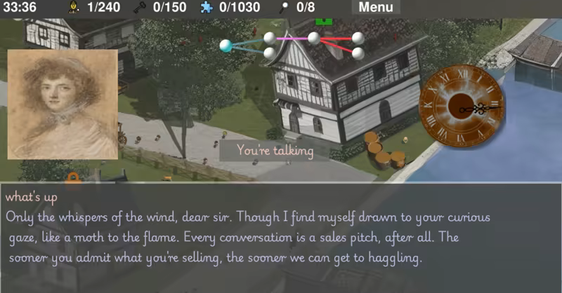 Some people will lie, some don't know the truth, and some lack the capacity to tell the difference. Explore the town, hunt for clues around every corner, and assemble your evidence board from the convoluted threads that you pull from the suspicious townsfolk. Once at trial, plead to the biased jury the facts you've uncovered, make emotional appeals based on what you've learned, cast doubt and aspersion, or maybe just make loud demands.