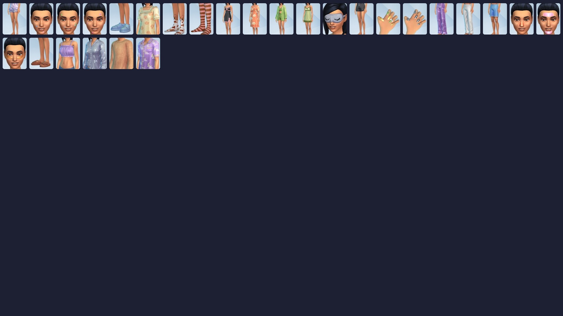 • Cozy and Stylish — Whether your Sim prefers comfy and soft loungewear or the most delicate silk attire, these dreamy looks make them feel cozy and stylish during an overnight stay with friends.