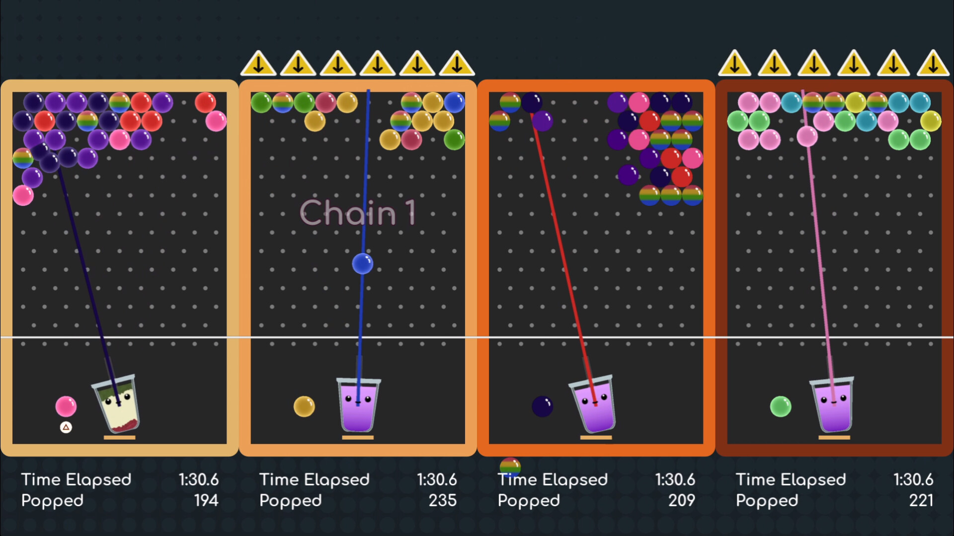 Puzzle Milk Tea is a match 3 arcade game where players can pop boba on their field in different game modes. Starting up a match is as easy as picking a mode, picking a drink, picking a level, and playing!