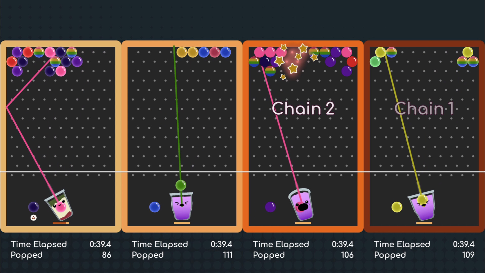 Puzzle Milk Tea is a match 3 arcade game where players can pop boba on their field in different game modes. Starting up a match is as easy as picking a mode, picking a drink, picking a level, and playing!