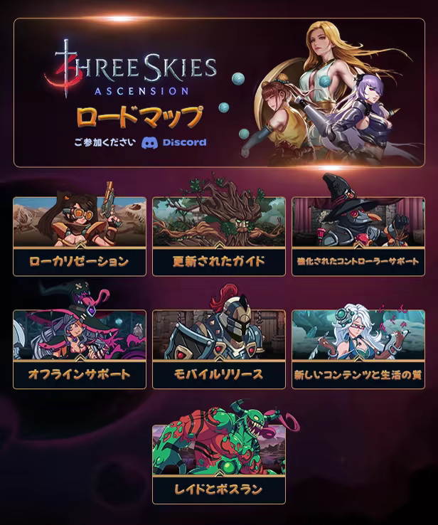 このロードマップは、Three Skies Ascensionで現在開発中の内容の一部を垣間見ることができます。2025年のさらなる進化のため、皆様のフィードバックを心よりお待ちしております!