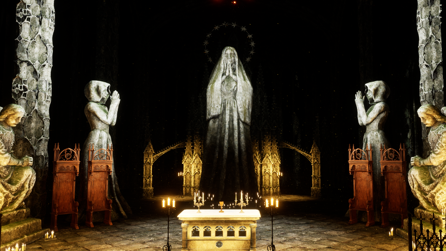 You play for a female character Echo (from EpicStore market) who falls into the territory of the dark Cathedral with demons and you have to explore this territory. Use your weapon against your enemies and defend your life