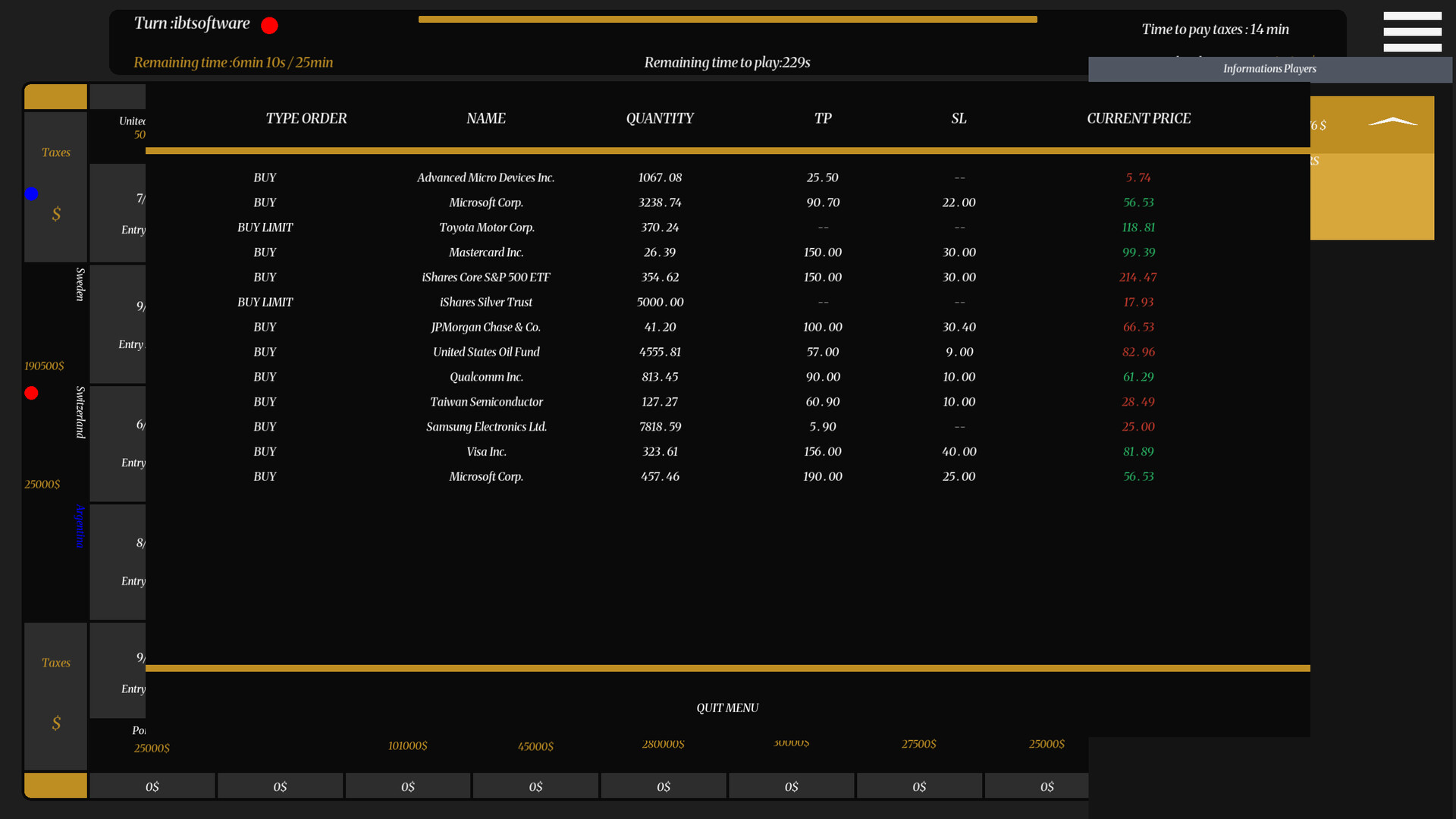 THE BEST INVESTOR is a strategic board game where you start with an amount of money, then face your opponents by making investments of all kinds in order to increase this financial wealth as much as possible in order to become the best investor of the game!