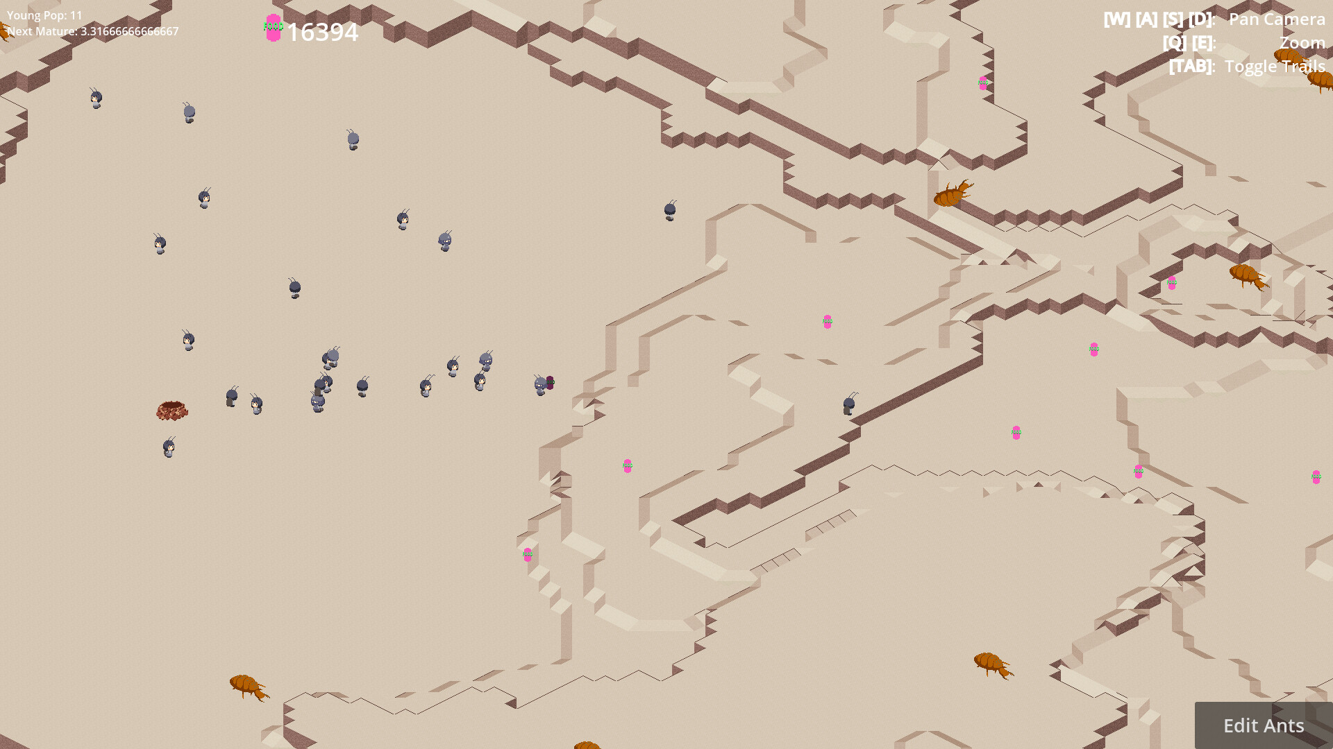 You can customize the ants' abilities and behavior to your liking.