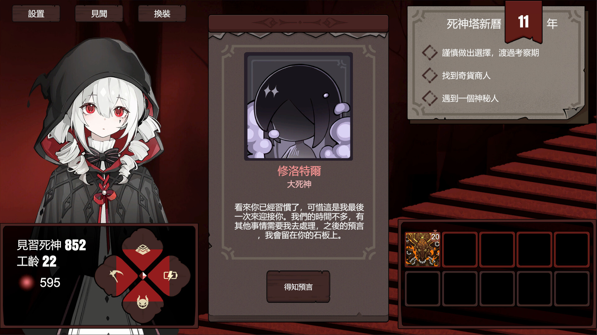 You will play as a Trainee Death, harvesting Souls to pay off your debt. Random choice events offer you various options: Lie in bed and slack off since the debt is endless anyway, Or follow your senior to earn some extra Souls, collecting outfits to switch up your style. The life of an apprentice Death is hardly living, with limitless chances for dying and reliving.