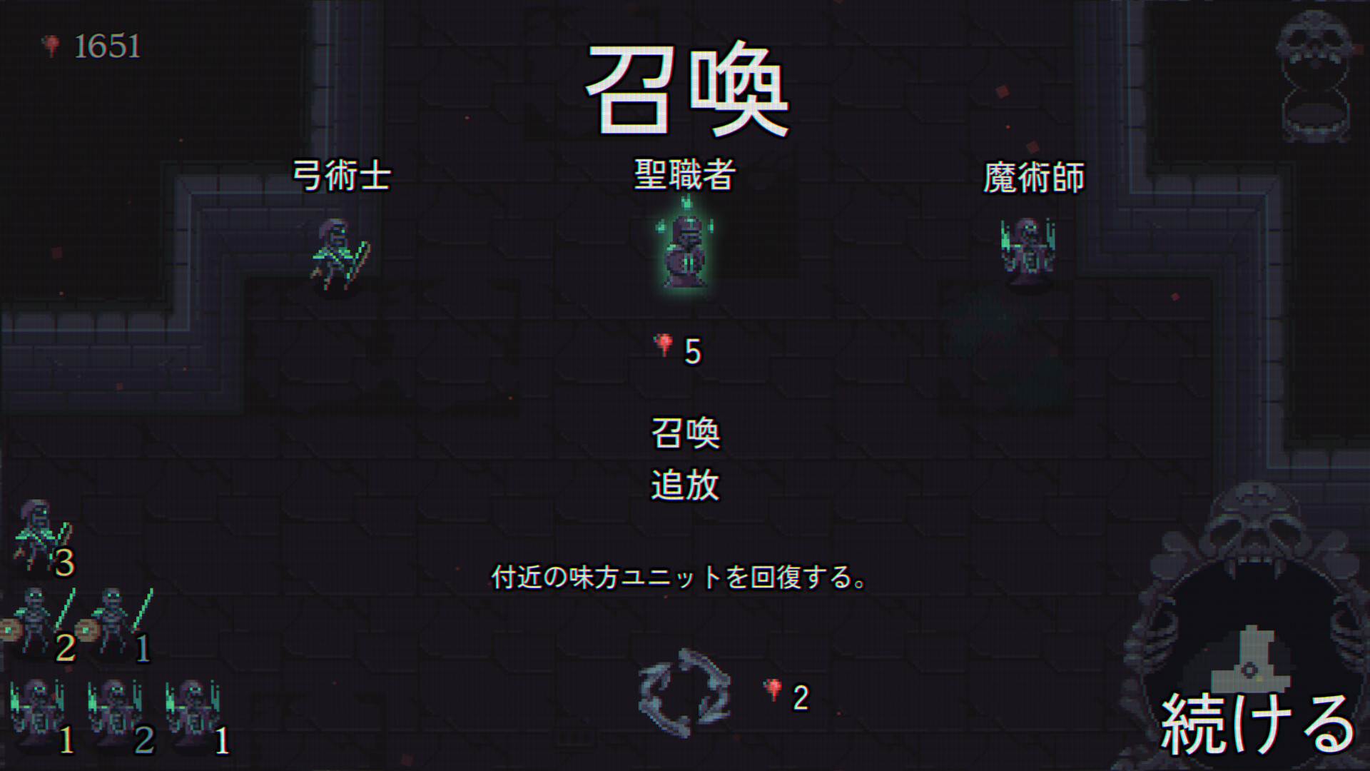 『スカル・ホード』では押し寄せてくる肉塊どもとの戦いで、空飛ぶドクロのネクロマンサーとしてガイコツの軍団を育て上げることになる。戦利品を集めて部隊を編成しながら、ランダム生成されたダンジョンを探索せよ。