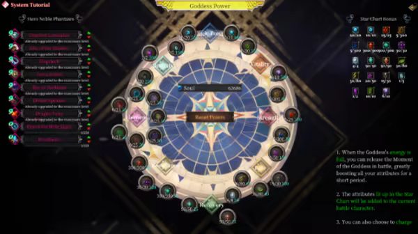 女神力量系統可以在危機關頭救自己一命,並且在短時間內大幅度提升戰鬥力,玩家可以通過收集靈魂碎片來升級女神天賦,使得女神力量更強。