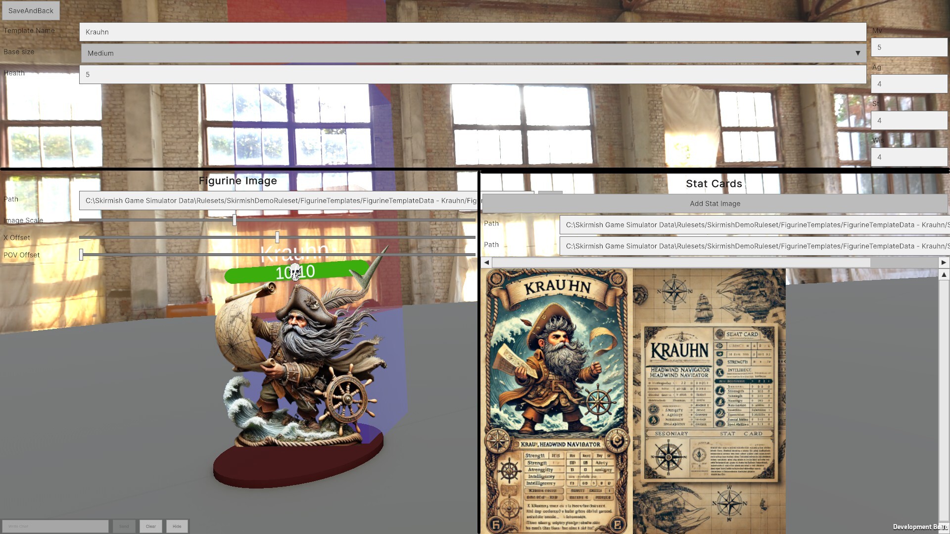 - Stat cards for figurines can be set to images or generated (figurine images, stats, and augmentations are used to generate stat cards when playing)