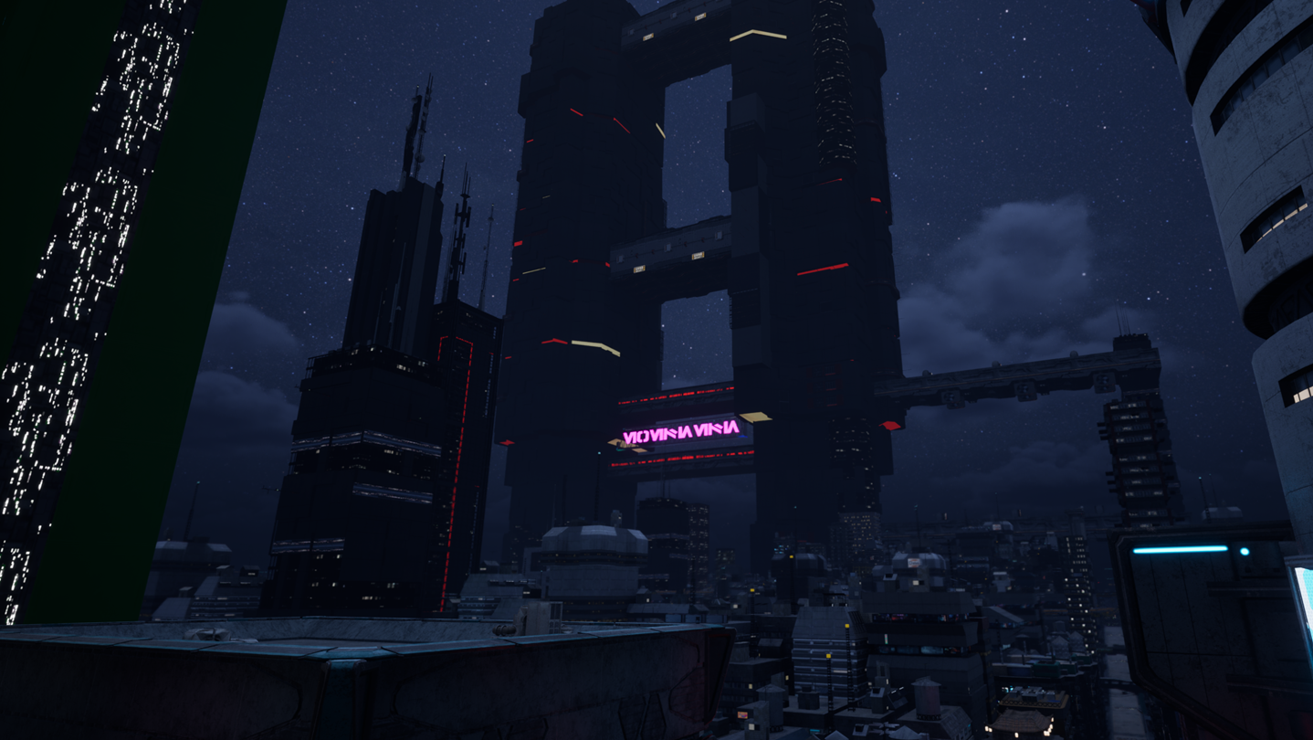 Mega City Parkour is all about exploring a massive Cyberpunk / Sci-Fi city of the future. There is no score, no killing, no quests – only fun exploration.