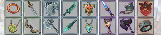 Each character can carry up to 9 pieces of equipment. There are 4 different rarity levels, with higher rarity levels providing higher attribute bonuses and some having special effects. In addition to providing attribute bonuses, equipment also provides blessings, players can choose different types of equipment according to their own needs to freely match.