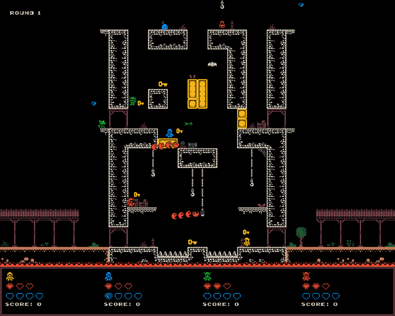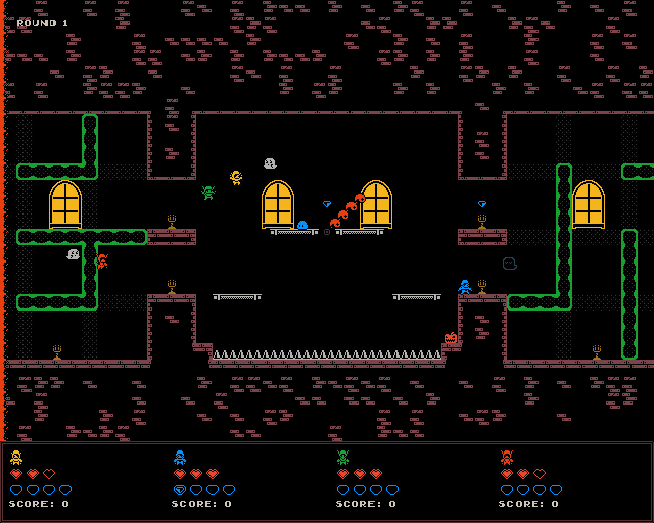 Rogue Raiders is a multiplayer action platformer. Jump through dungeons while collecting loot and avoiding monsters and traps. Each round starts with the players placing down traps, monsters and equipment. Then you compete against each other by platforming and wall jumping through the dungeons, avoiding damage and collecting loot. The winner is whoever takes less damage and collects most treasures.