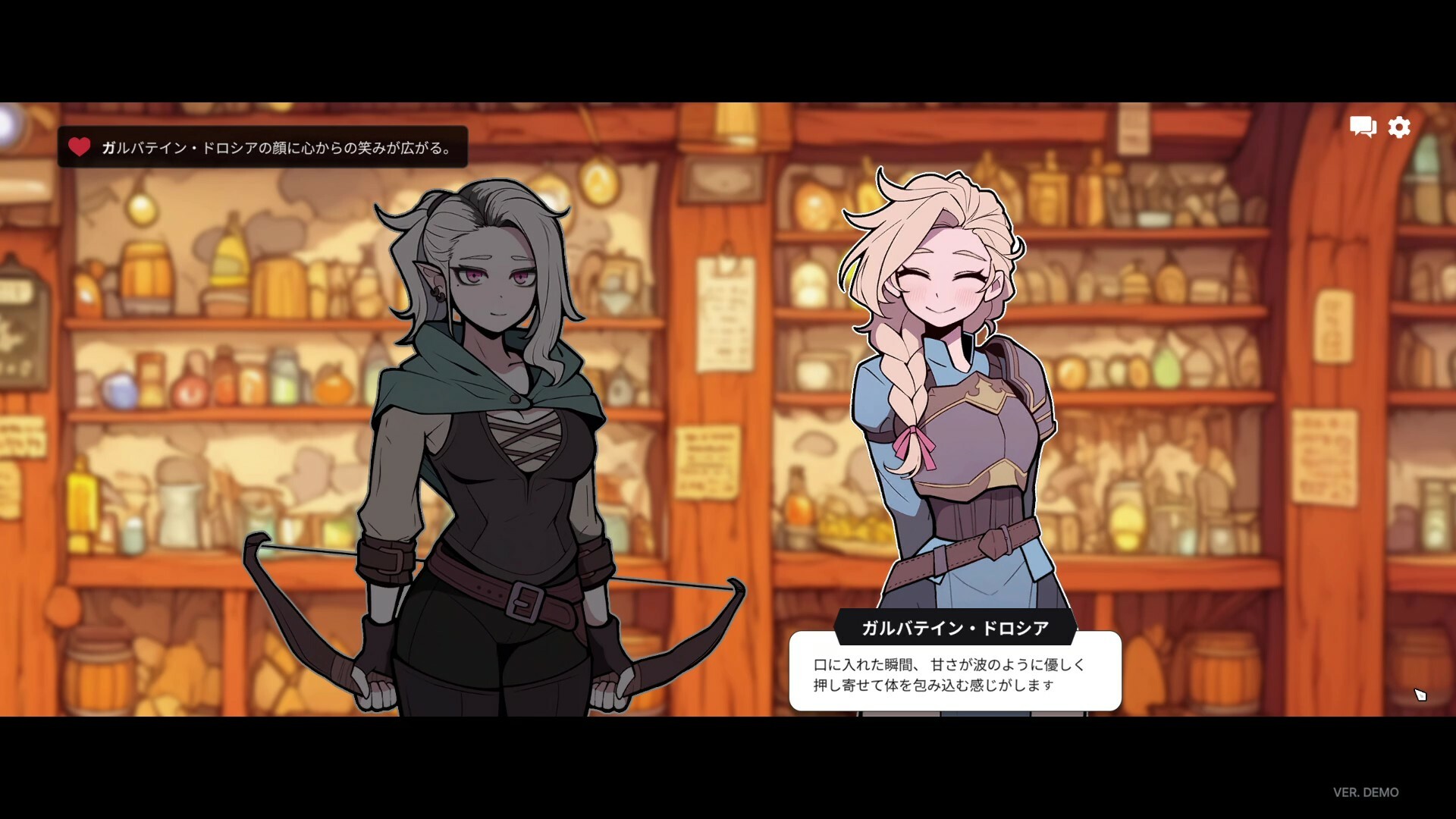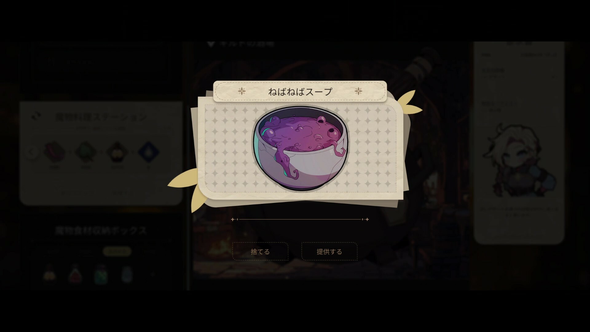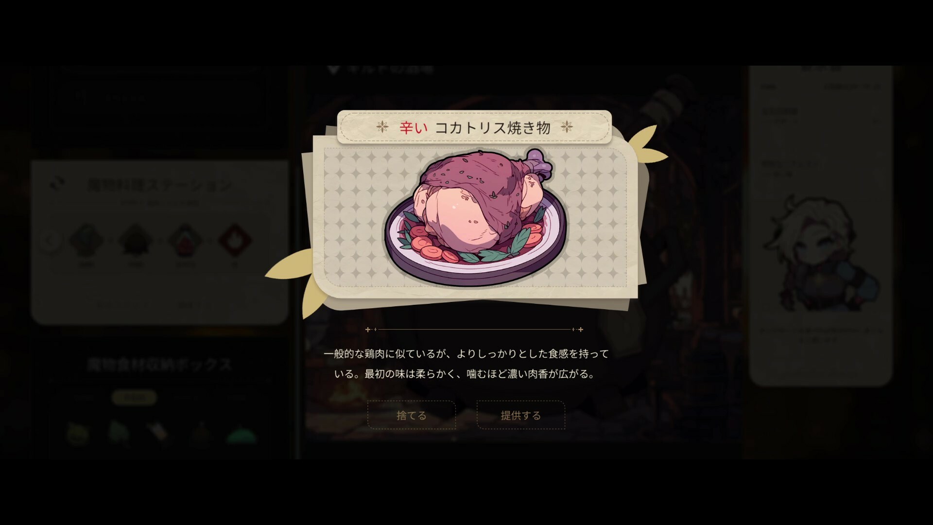 夜になると、ギルドの酒場が開店します。 一日の疲れを癒しにやって来た冒険者たちは、さまざまな物語を語ってくれます。 何気ない日常の一コマから、命がけの冒険譚、あるいは——ちょっと素敵な恋の話まで。 魔物の戦利品を使って「魔物食」を料理しながら、彼らの語る世界に耳を傾けてみましょう。