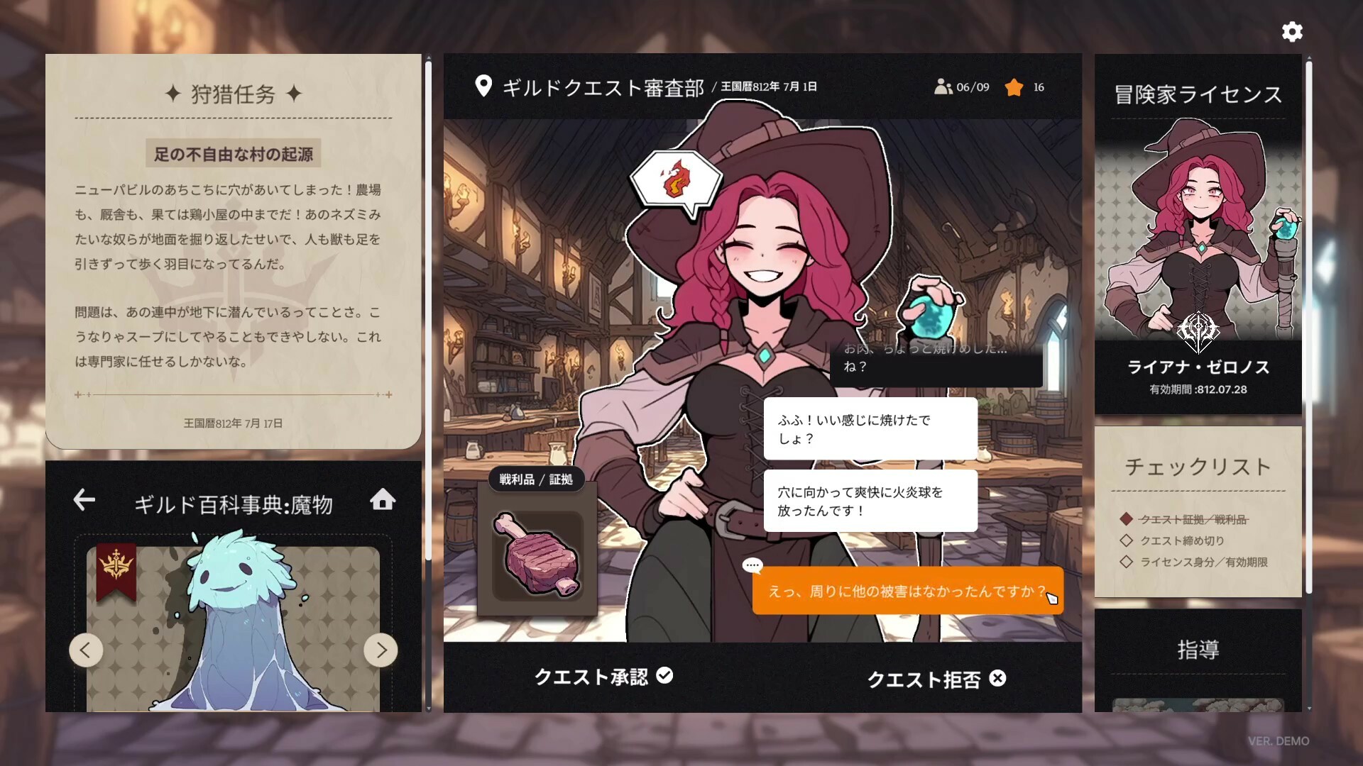 ほとんどの依頼人は、魔物に関する知識をあまり持っていません。そのため、受付係はクエストに記された情報をもとに、対象となる魔物を推測しなければならないのです。そしてその後は、戦利品や魔物図鑑、地図、ライセンスなど――さまざまな情報を照らし合わせて、冒険者がクエストを正しく遂行したかどうかを判断する必要があります。