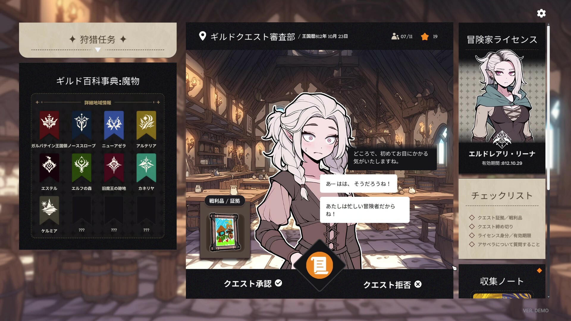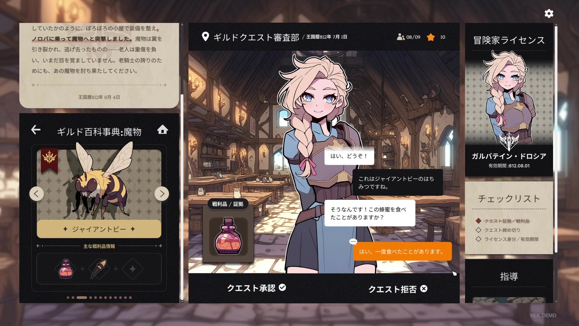 『ガルバテイン:冒険者ギルド事務所』は、ギルドの受付係となって冒険者のクエストを検討する、本格ファンタジーシミュレーションゲームです。