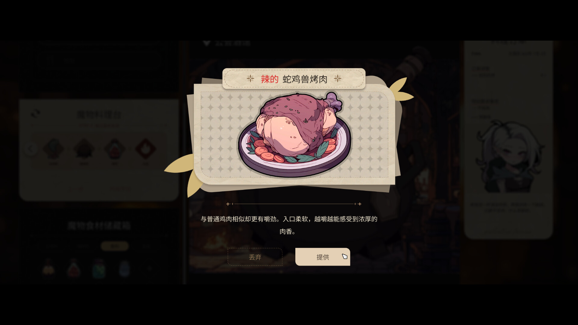 用魔物的战利品做菜,可不是一件轻松的事。太黏腻、太刺激,稍不注意还有中毒的危险!因此必须准确掌握其特性,选择合适的烹饪方式。要用能够中和缺点的辅材、恰到好处的香料,甚至还要考虑料理本身的属性。是不是听起来很难?别担心。魔法锅「卡乌先生」(其实是主厨)会帮你一臂之力!