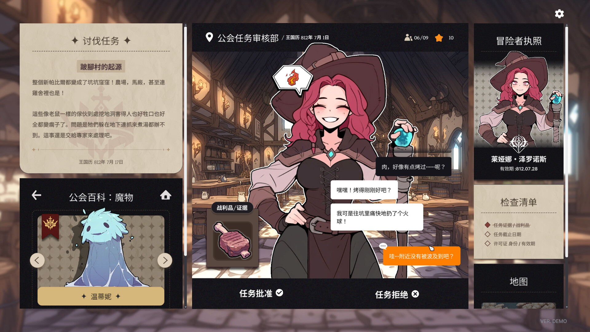 「加尔巴泰:冒险者公会事务所」是一款正统奇幻题材的模拟游戏,玩家将扮演公会的接待员,审核冒险者提交的任务是否完成。