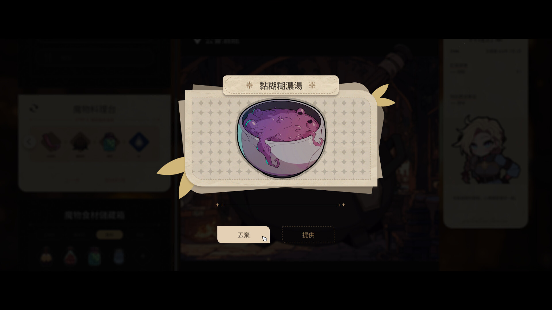 使用魔物戰利品做出的料理,往往充滿挑戰。 有的太黏膩——有的甚至可能令人上癮。 因此,必須正確掌握其特性,選擇合適的烹調方式。 搭配能抵銷缺點的食材、適當的香料,甚至要考慮料理本身的屬性。 覺得太難?別擔心。 魔法鍋「卡烏先生」(實際上就是主廚)會在一旁為您提供最棒的協助!