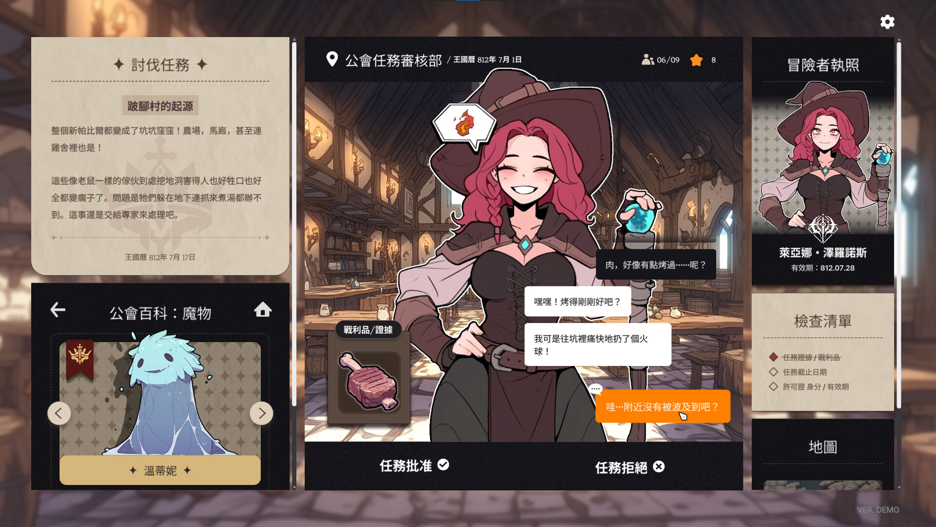 接著再結合戰利品、魔物圖鑑、地圖、執照等多方資訊,來判斷任務是否合格完成。