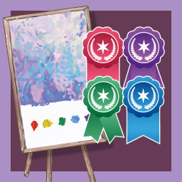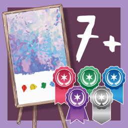 In Canvas, you combine transparent Art Cards to create unique paintings, with each card adding elements and icons that shape your final score. Strategic choices about which cards to layer, and which icons to reveal or cover, are key to meeting scoring conditions and earning ribbons. Each painting contributes to your score while also becoming a one-of-a-kind masterpiece with its own title.