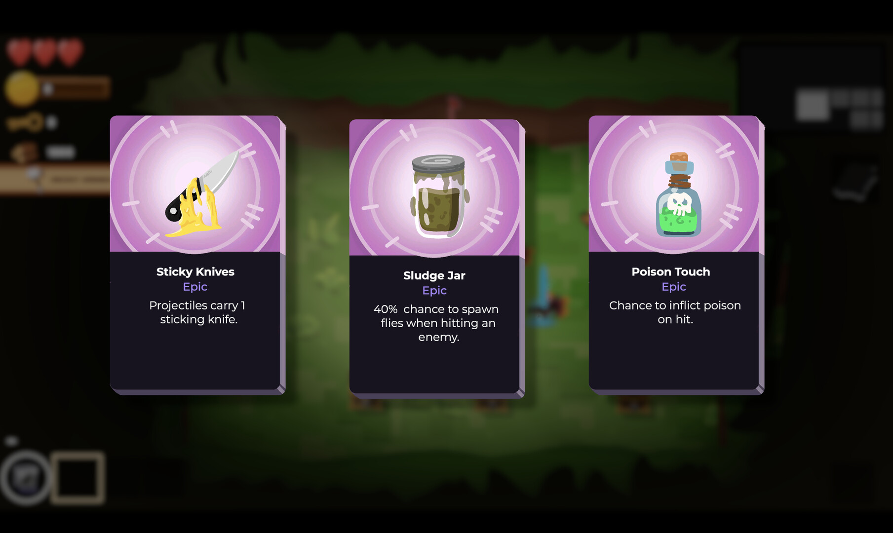 Stack bouncing bullets with lightning chains. Attach spinning knives to XL projectiles. Ignite enemies, freeze them, poison them, or detonate them, then combine everything into a swirling storm of chaos.