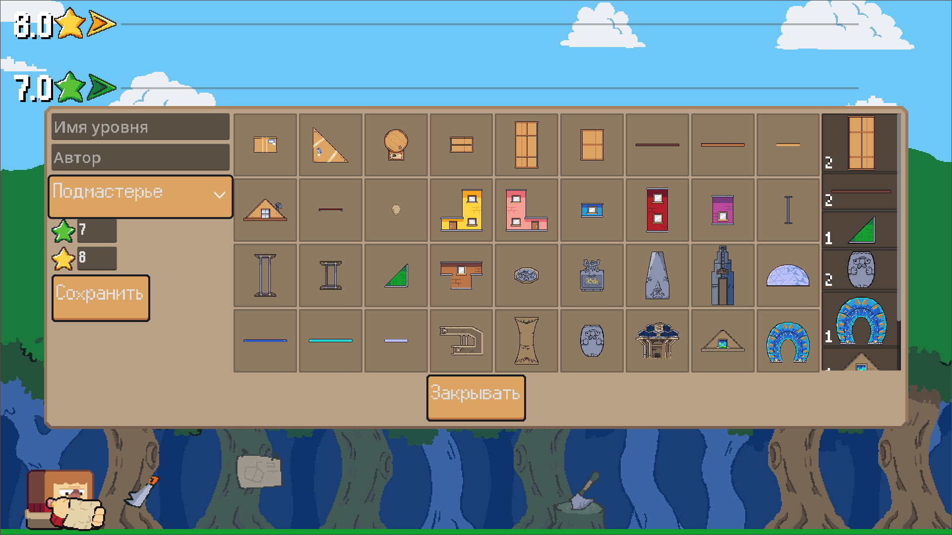 На каждом уровне — новые испытания и ограниченное количество объектов. Размещай, вращай и складывай элементы, чтобы создать устойчивую конструкцию, по которой можно взобраться наверх.
